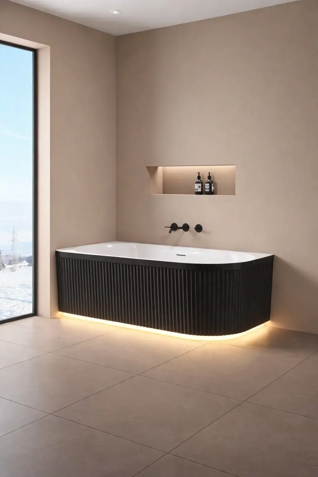 Bathtub stone Alcoswell Rosery Acrylic Glossy white inside Black outsid Wavy surface 170*80cm ROS 17080S-GW-BLACK