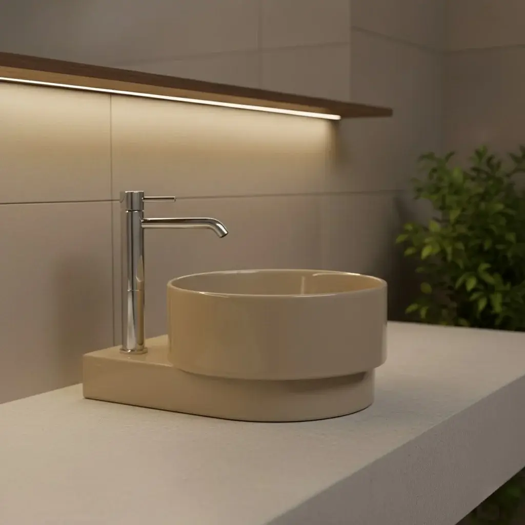 Countertop Basin Simas Foriu Sabbia round without mixer and exit hole matt 40cm FO01&PLCE||SAB