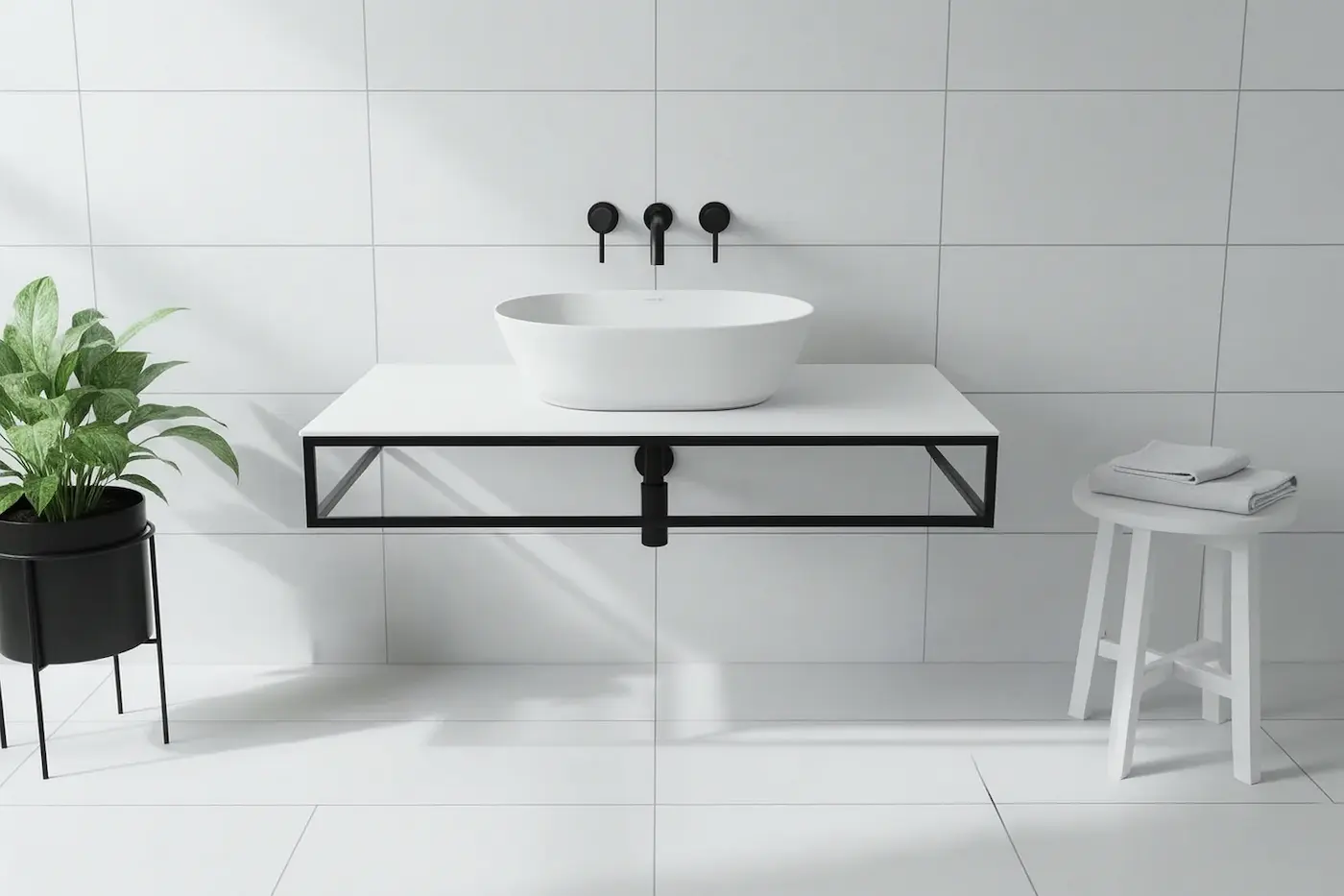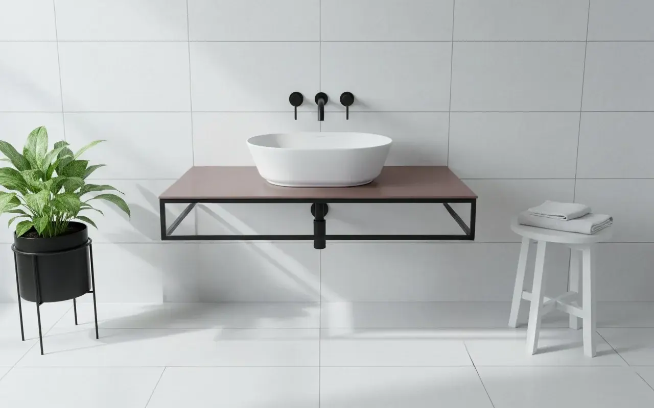 Basin Shelf Simas Foriu, ceramic, Prugna, plum, matte finish, metal stand, 100*51 cm