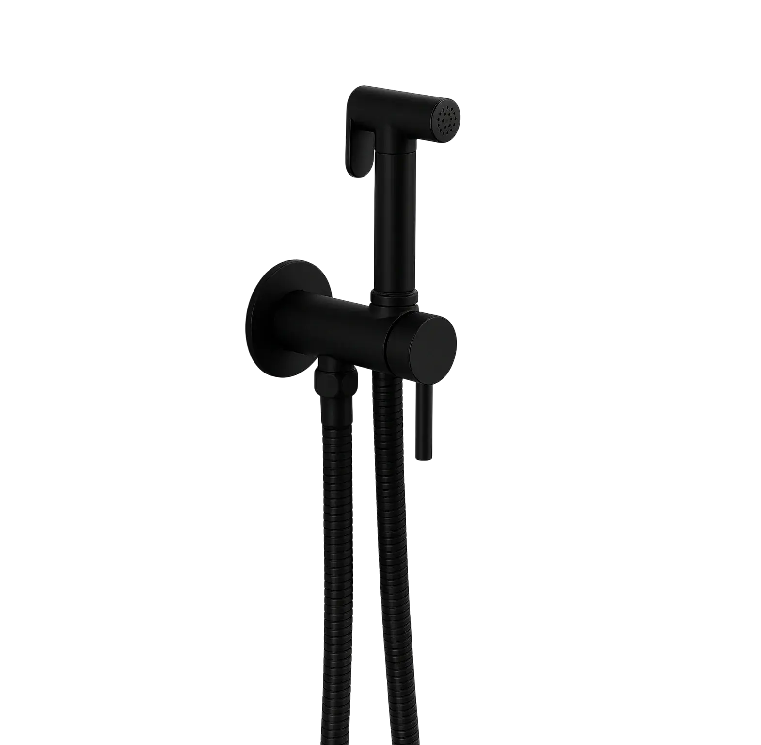 Hygienic shower built-in set Empolo. Black matte surface, compact design and single panel.