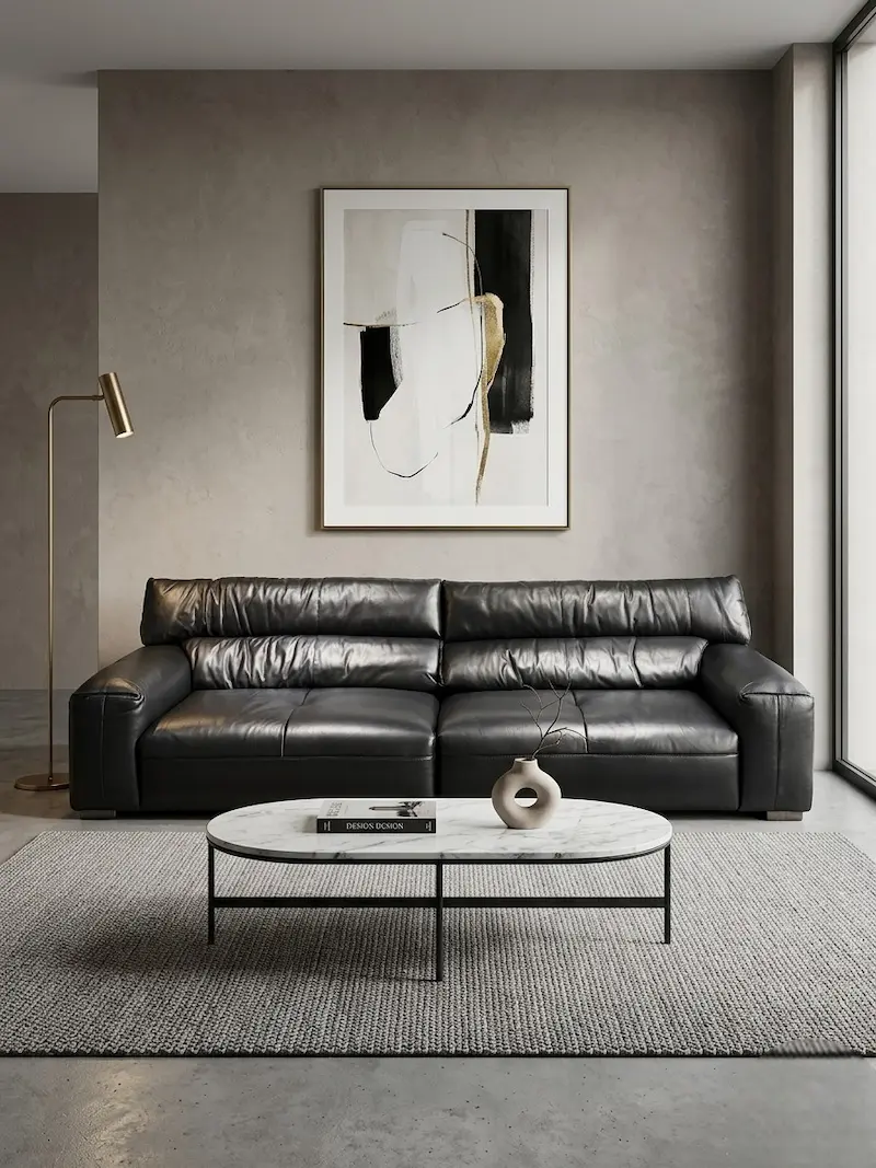 Living room sofa Kimhome Black Leather 306*106*85cm Q8200