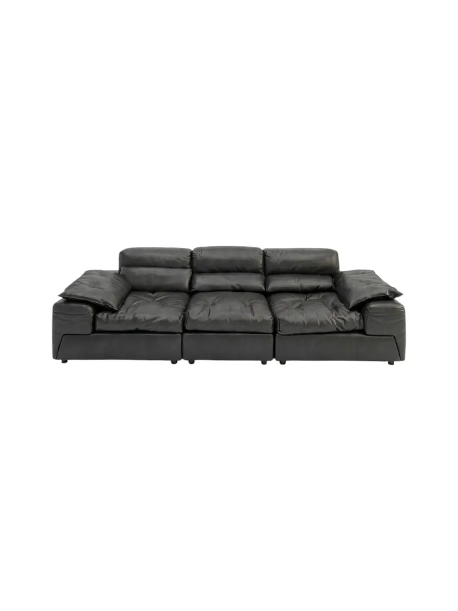Living room sofa Gerbris Black Grade B Partially genuine leather Three seater 276*112*78cm G9781
