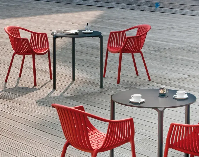 The chairs are made by injection molding, a combination of polypropylene and fiberglass, which ensures structural strength. Resistant to various weather conditions and is suitable for both indoor and outdoor spaces – garden, balcony, cafe or home. The material is resistant to rain, sunlight and temperature changes. High UV resistance protects against color fading. The chairs do not attract dust and are easy to clean, which simplifies maintenance. The lightweight structure and stackability make it easy to move, transport and save space.