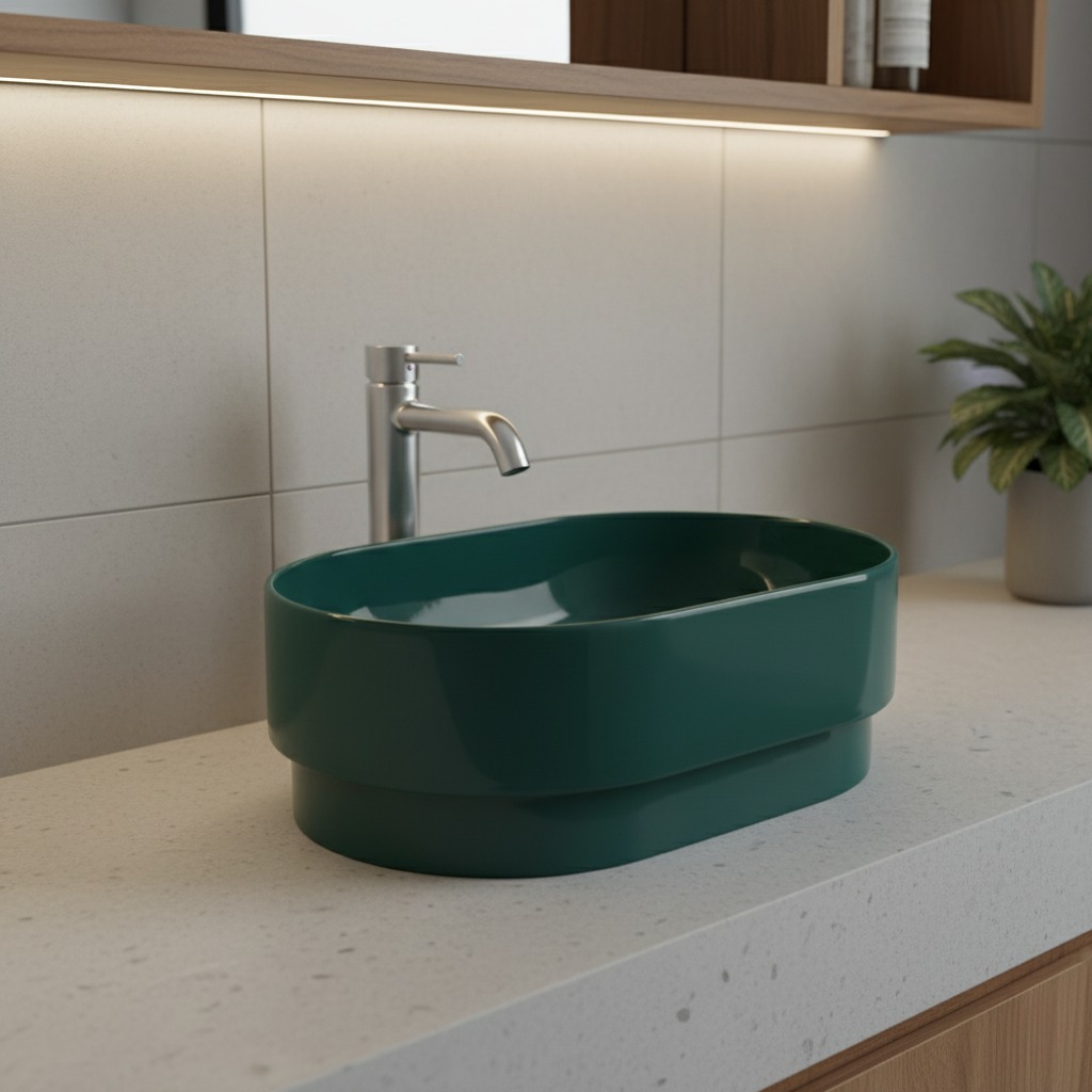 Semi-inserted Basin Simas PM Menta oval without mixer and exit hole glossy 56cm PO02&PLCE||MEN