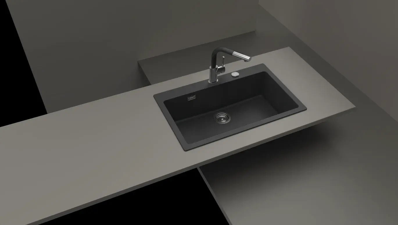 სამზარეულოს ნიჟარა Shock BROOKLYN/N-100XL კომპოზიტური კვარცი CRL ერთიანი ამოსაკრავი NERO 75*45.5სმ BYKN100XL013DEUE6101