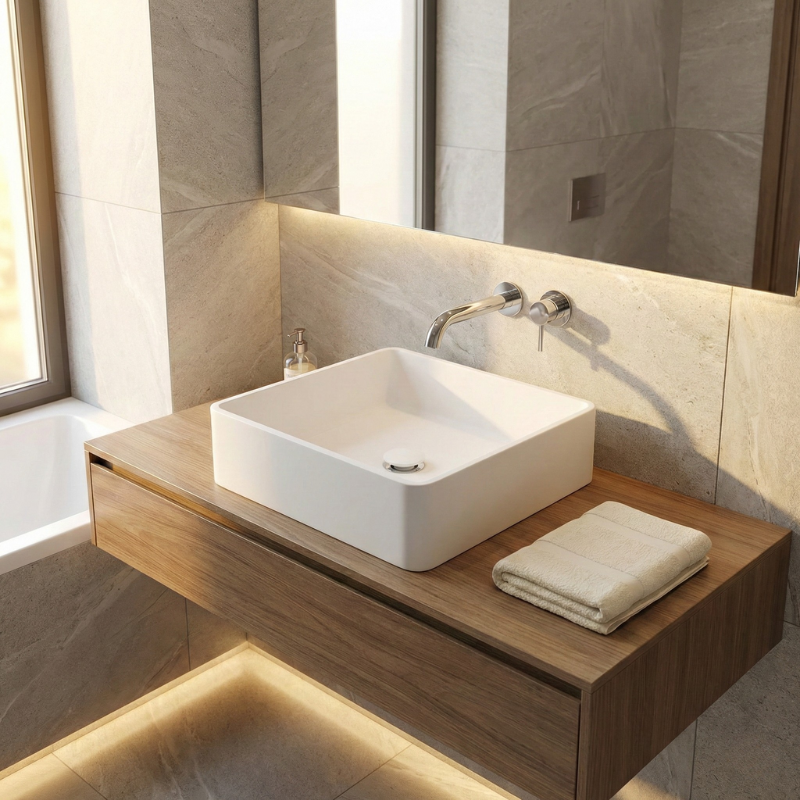 დასადები ხელსაბანი ქვის Aquaforte DARA ოთხკუთხედი 37*37სმ BC07348BNC