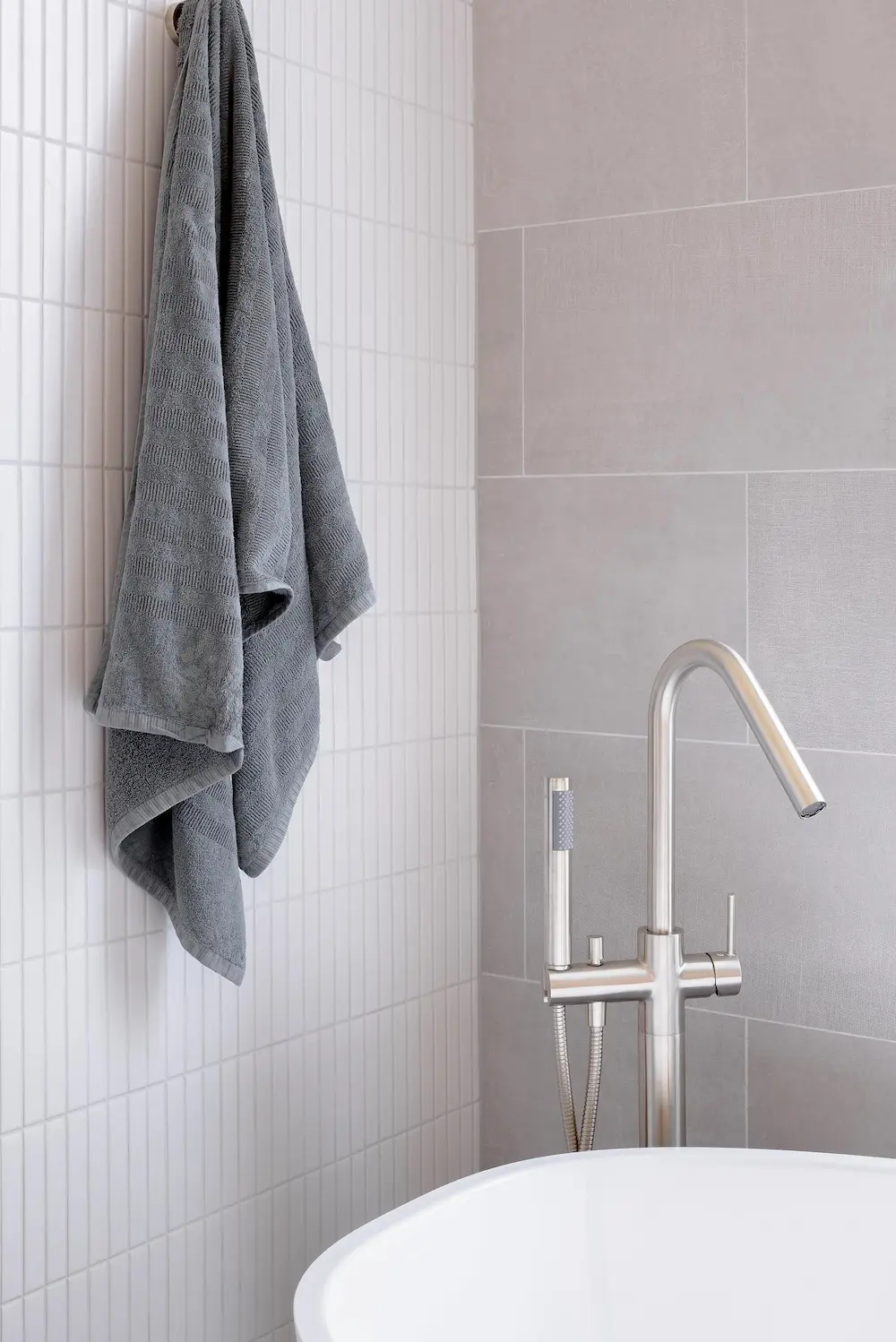 იატაკზე სამაგრი აბაზანის შემრევი ონკანი Meir Round, ხელის შხაპით, ბრაშირებული ნიკელი
