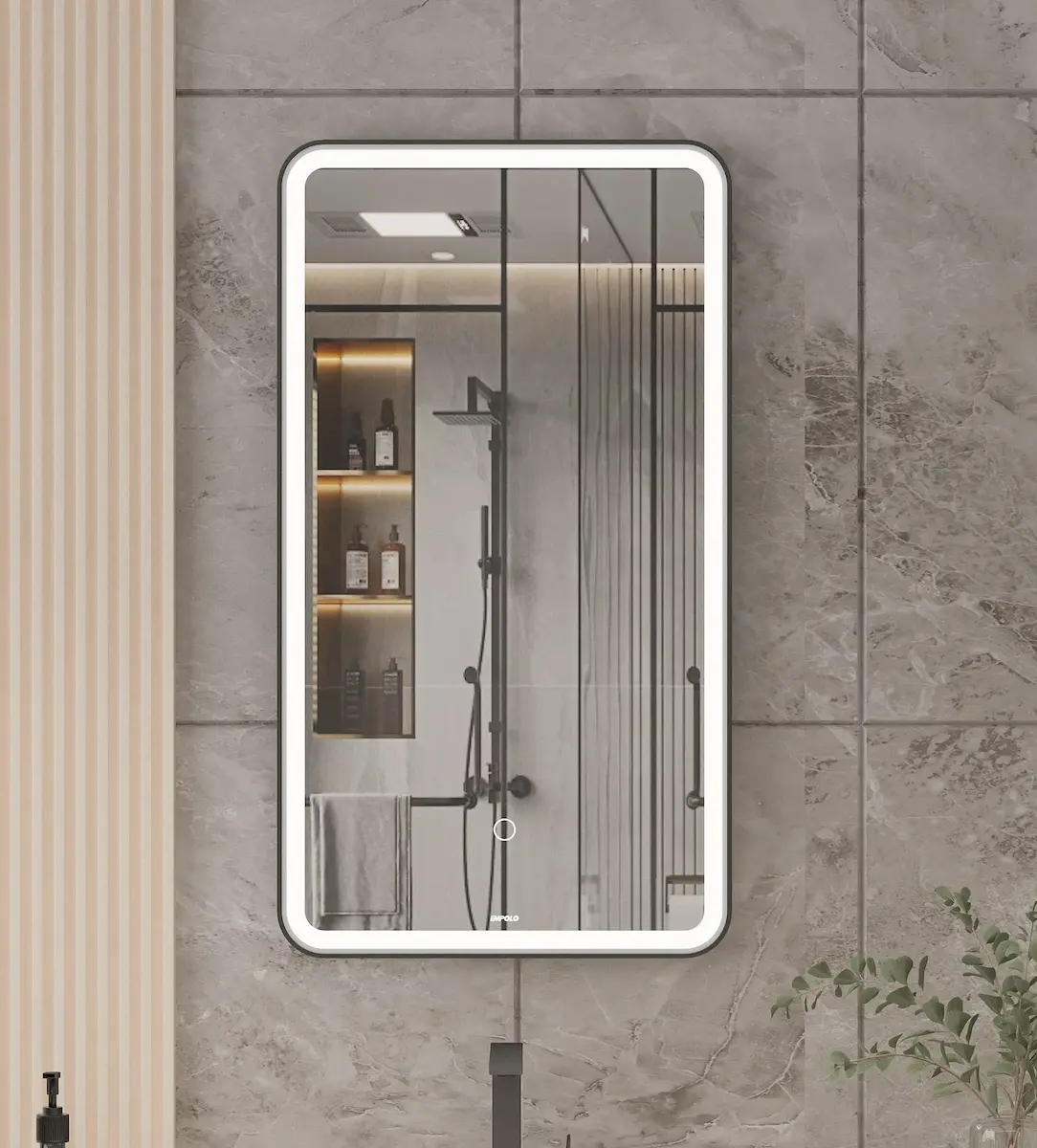 სარკე Empolo განათებით მართკუთხედი წვრილი თეთრი კანტით 67*98 სმ MEC819-10M