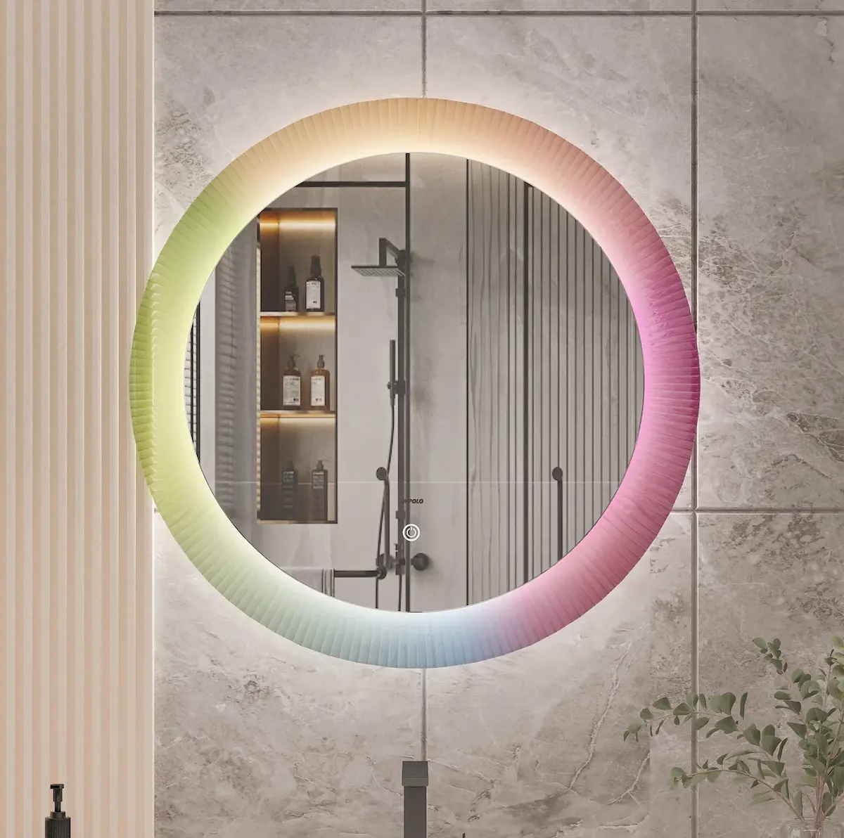მრგვალი სარკე Empolo, LED განათებითა და ცისარტყელას დეკორით