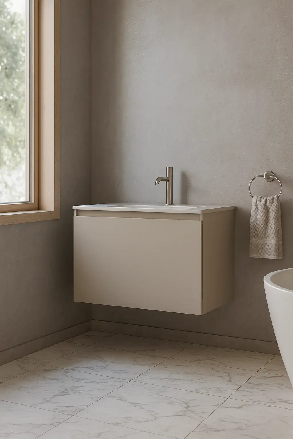 Jade კარადა ხელსაბნით ნესტსაწინააღმდეგო მასალა მატი ბეჟი კარადა და ხელსაბანი 74*48*46.5სმ JA23006-75B-Cabinet