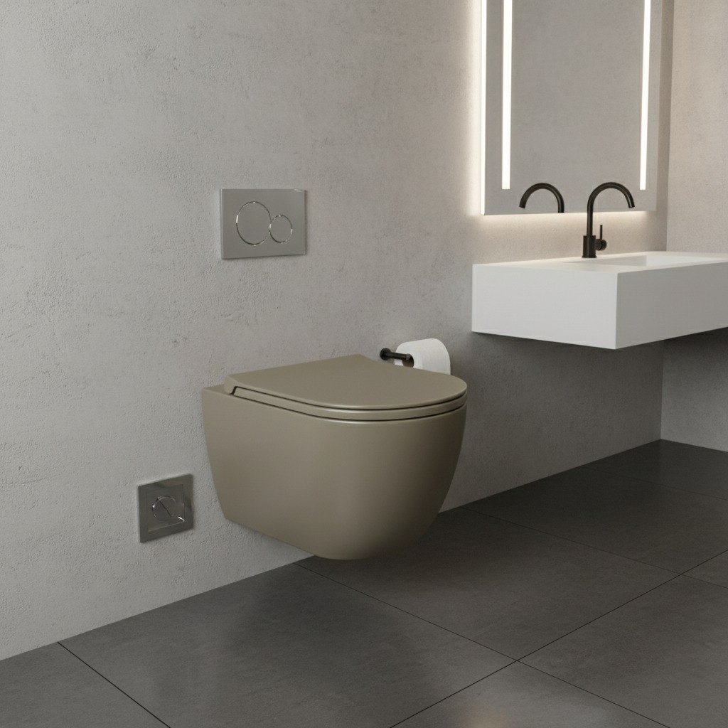 დასაკიდი უნიტაზი Simas Henges Moka სამონტაჟო კომპლექტით მატი 55სმ HE18&F85||MOK