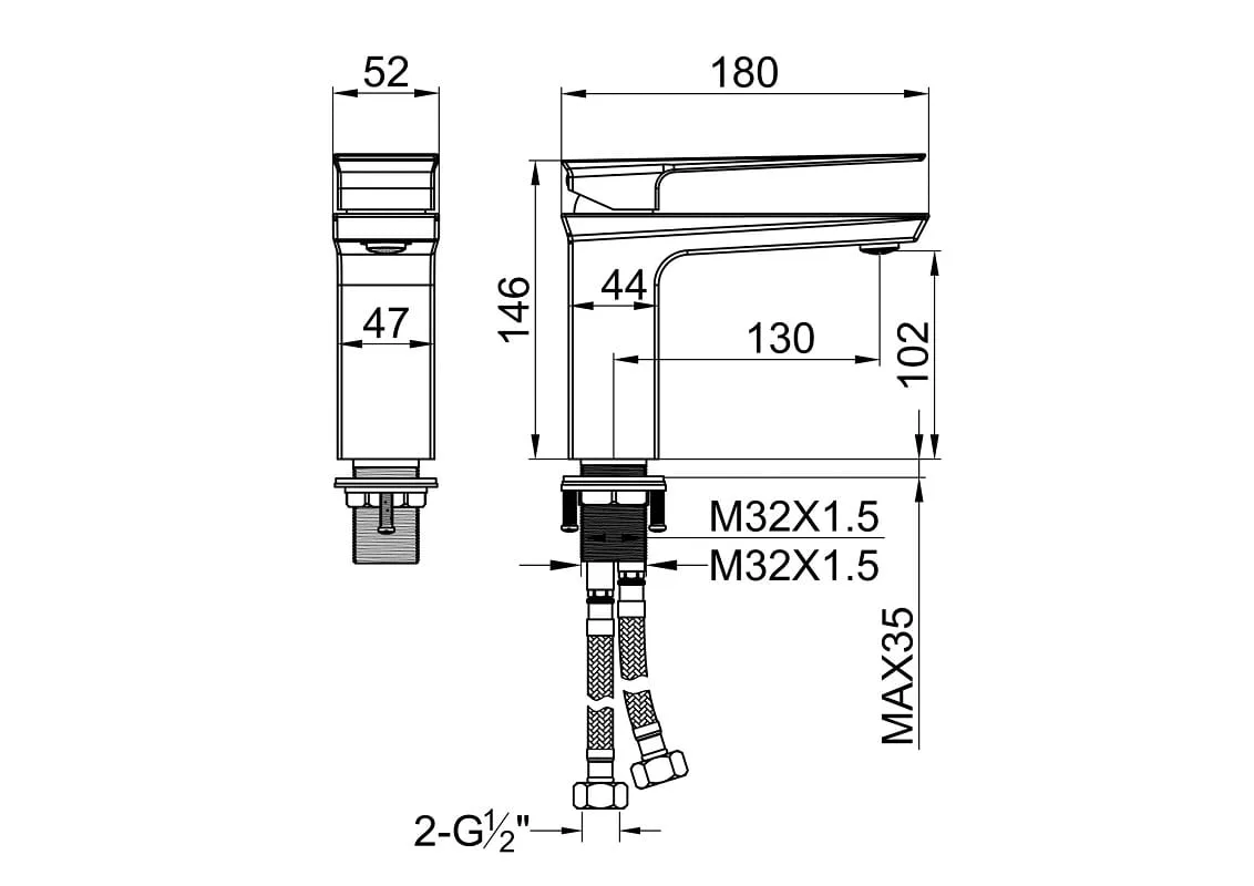 Смеситель для раковины Empolo. Хромированная глянцевая поверхность, с современным тонким и плоским дизайном.