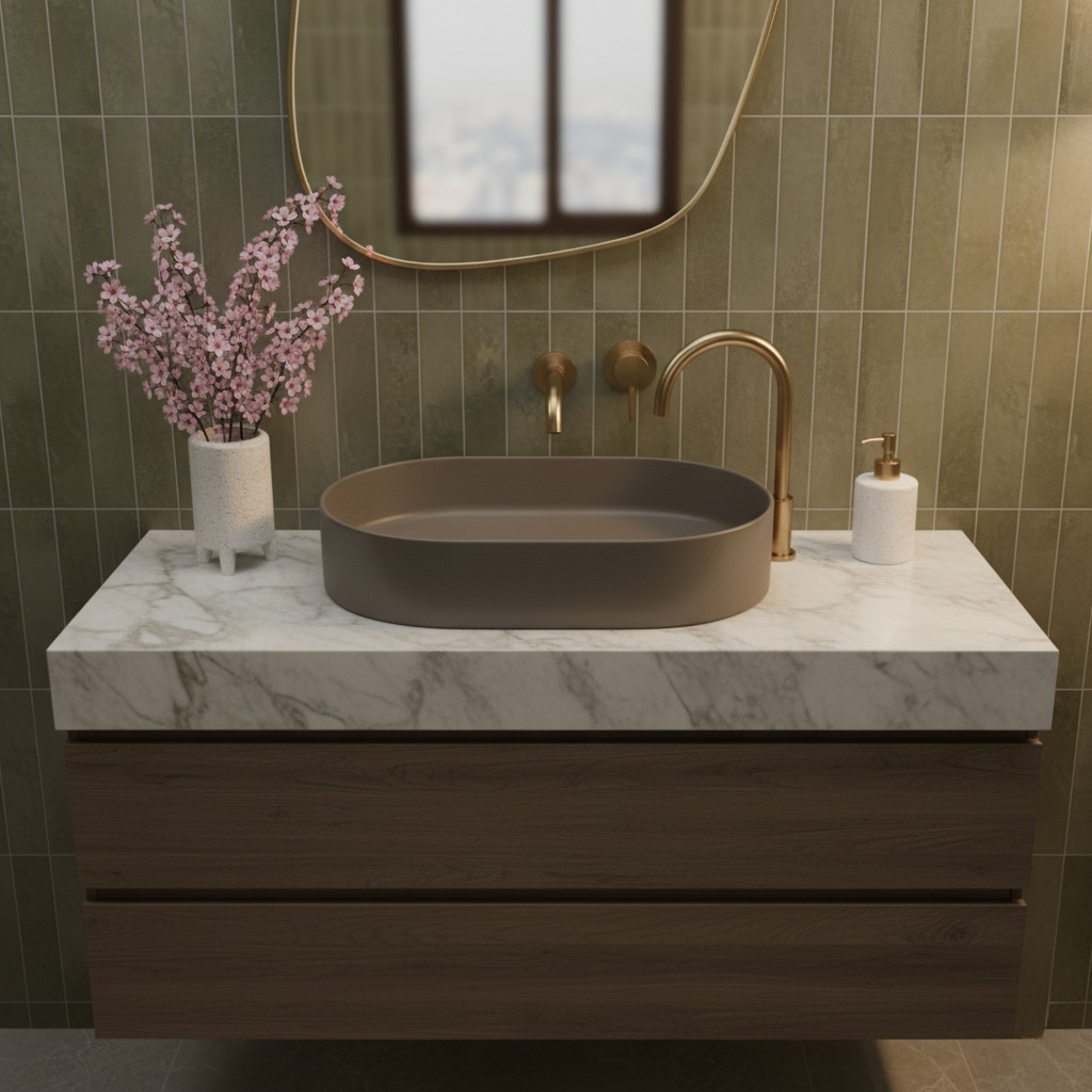 Умывальник накладной Simas Foriu Moka без овального смесителя и выходного отверстия С держателем сифона матовое 60 см FO02&PLCE||MOK