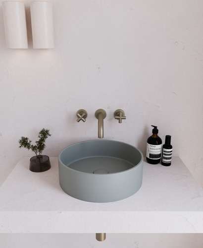 Умывальник накладной Simas Foriu Cemento круглое без смесителя и выходного отверстия С держателем сифона матовое 40см FO01&PLCE||CEM