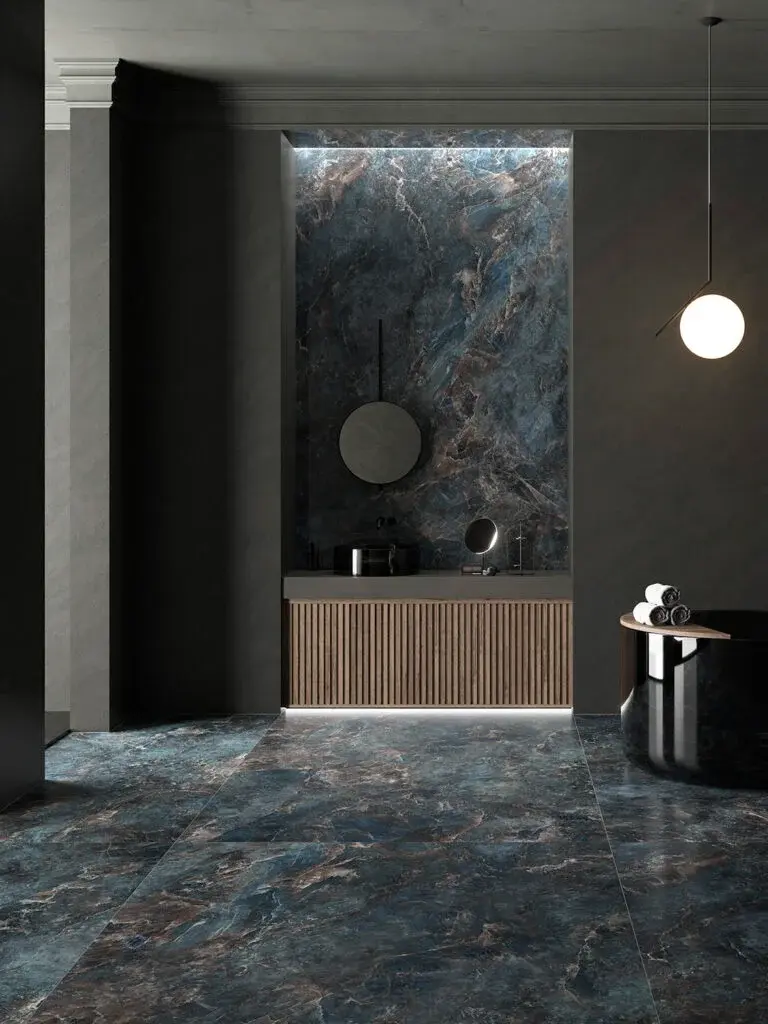 Крупноформатная плита (Slab) (керамогранит) Ascale Labradorite Royal Blue. С эффектом темно-синего камня, поверхность Soft Matt. 160*320 см, ASC930M